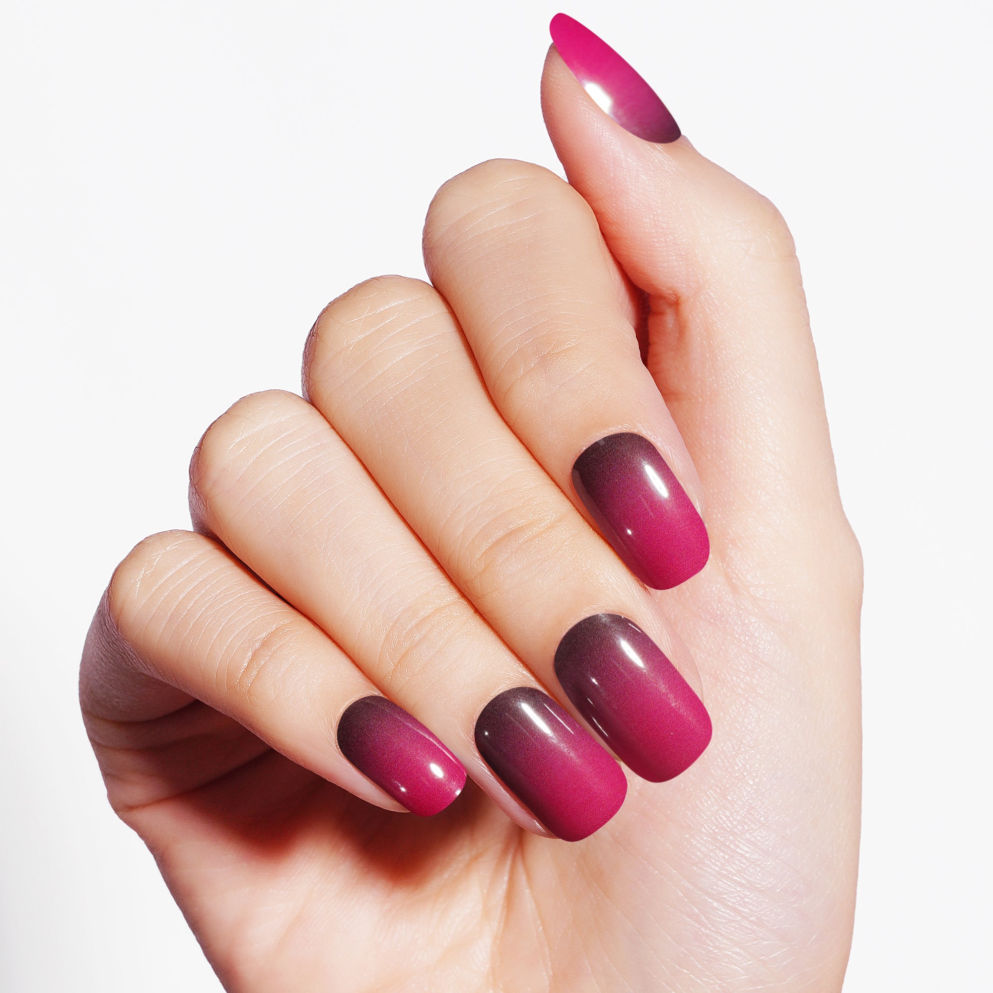 Dive into the depths of sophistication this Halloween with our "Berry Ombre" semi-cured gel nail strips. Perfect for those who desire a blend of mystery and style, these nail strips feature an elegant gradient of deep burgundy to charcoal black, creating a seductive look.