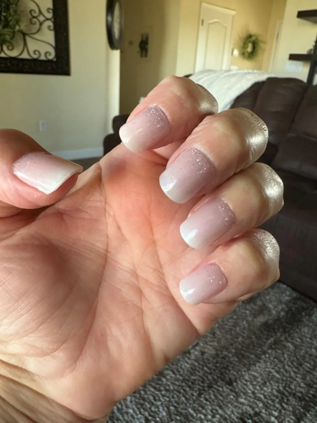 Add a sprinkle of sparkle to your style with our Glitter Ombre French Tip Gel Nails. This set features a subtle transition from a soft pink base to a shimmering white tip, accented with delicate glitter particles for a truly glamorous finish.